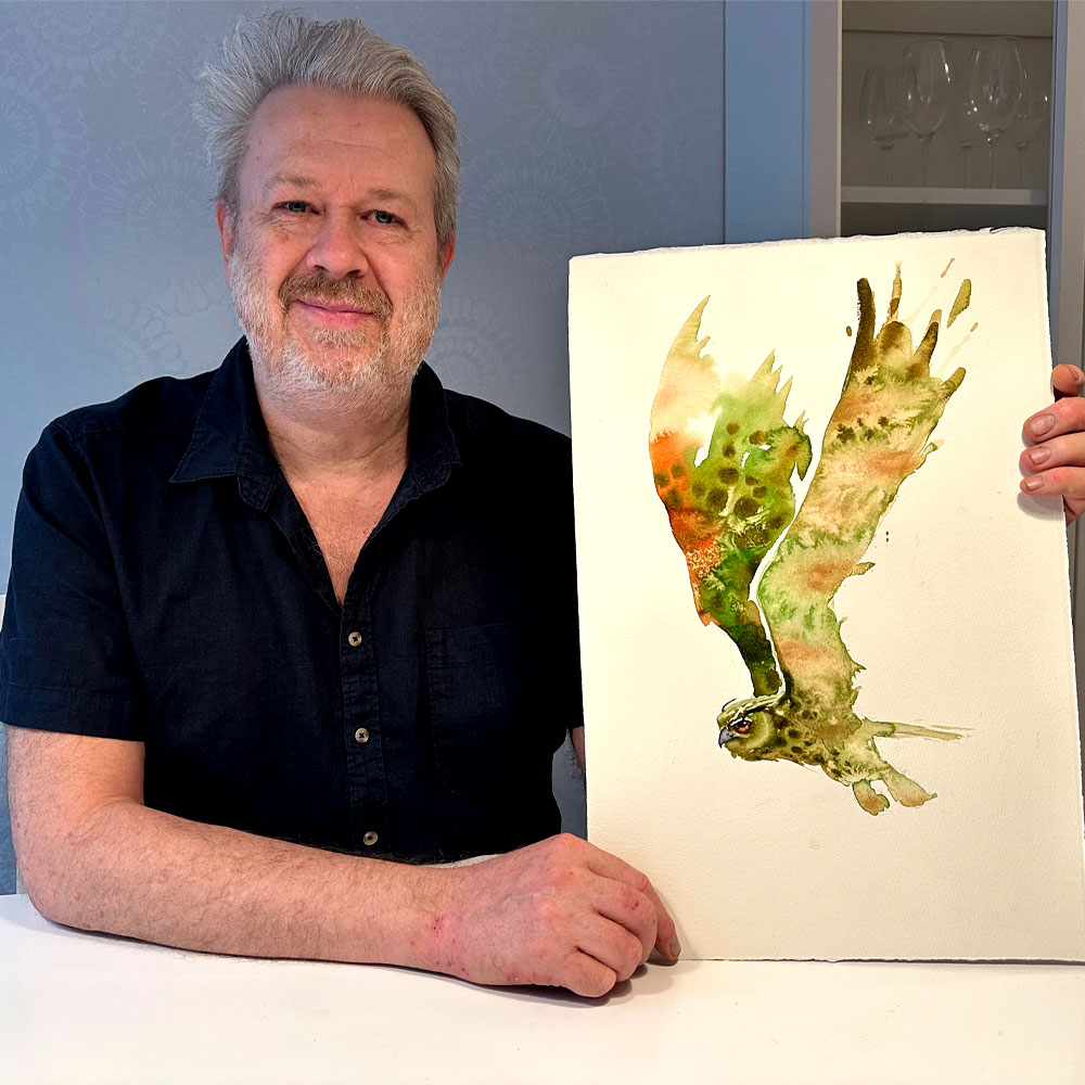 Vill du komma bort ifrån att måla med förlagans färger erbjuder jag dig ett intressant alternativ. I lektionen målar jag en flygande berguv med andra färger än bara brunt och försöker tolka den på mitt sätt. Jag demonstrerar motivet med endast ett fåtal färger och hur man kan tolka en berguv i flykten. Lektionen är inspelad med hög filmkvalitet och har visats för onlinekursen Akvarell Akademin 2024