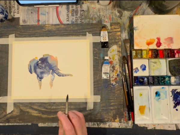 I den här lektionen visar jag hur man kan måla en elefant med tre färger. Jag skissar upp motivet först och försöker efterlikna förlagan utan att fastna i alla detaljer. Sedan målar jag delar av elefanten med färg efter färg och på så sätt målar tills den är klar. Detta är ett intressant sätt att måla på och man kan måla andra djur på samma sätt. Lektionen är inspelad med hög filmkvalitet och har visats för onlinekursen Akvarell Akademin 2024.