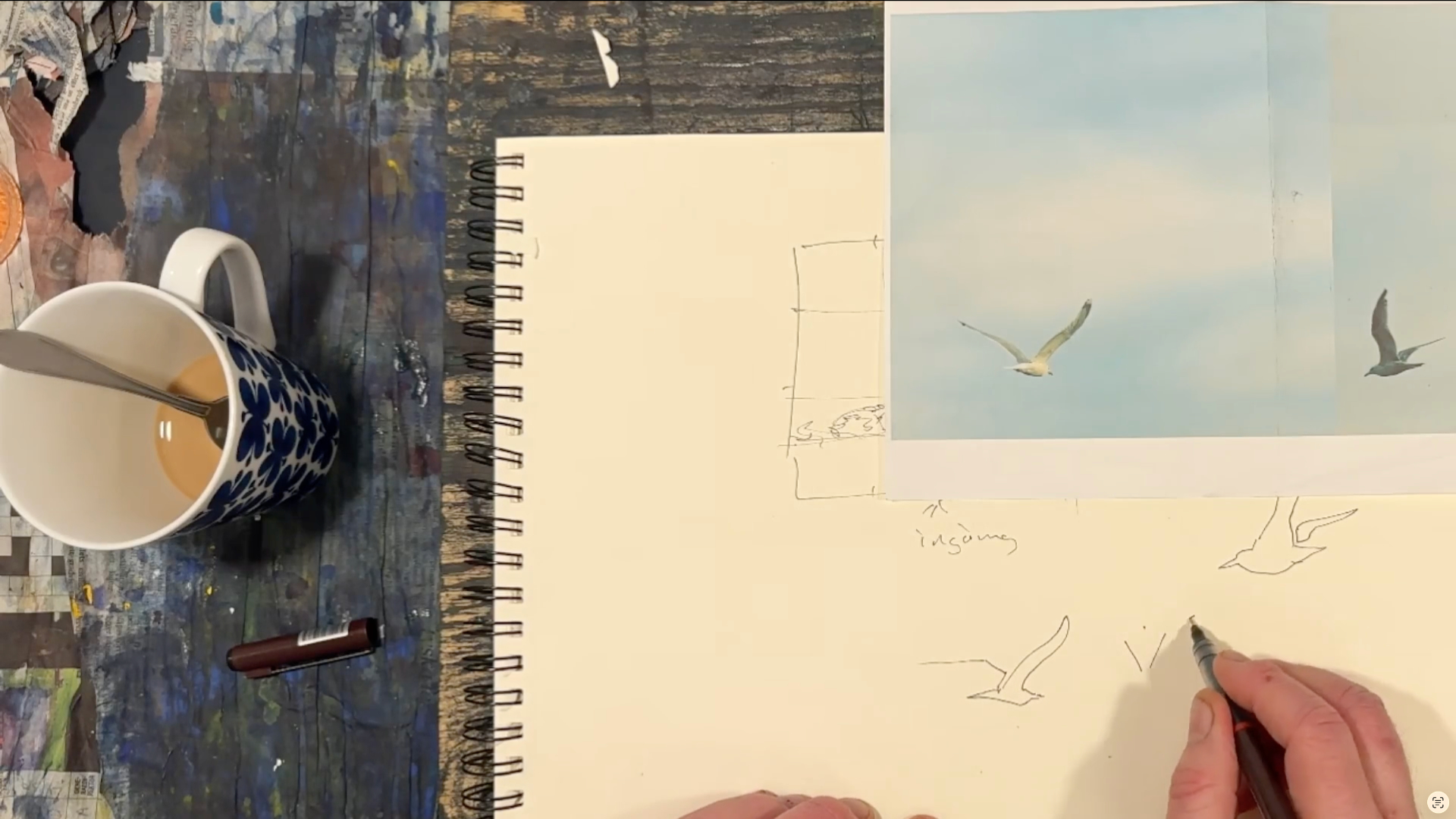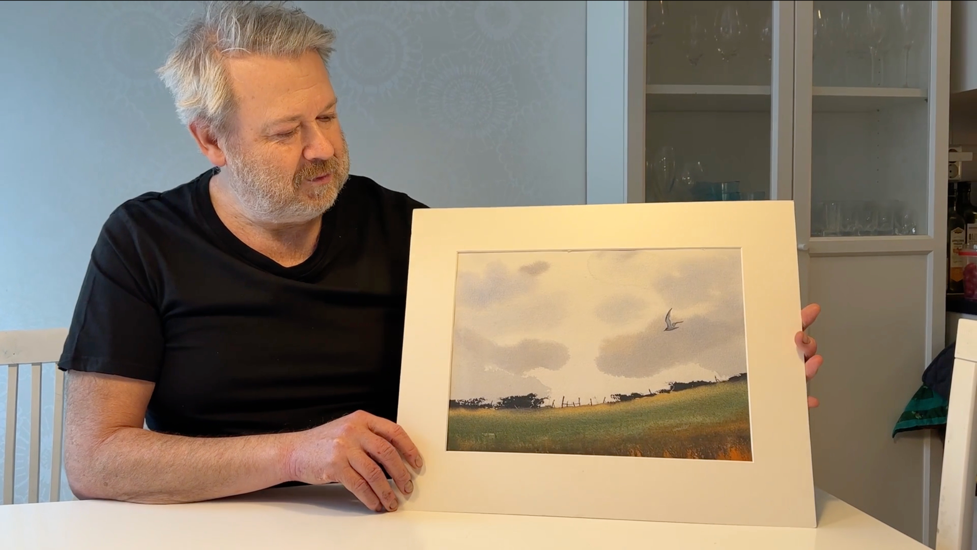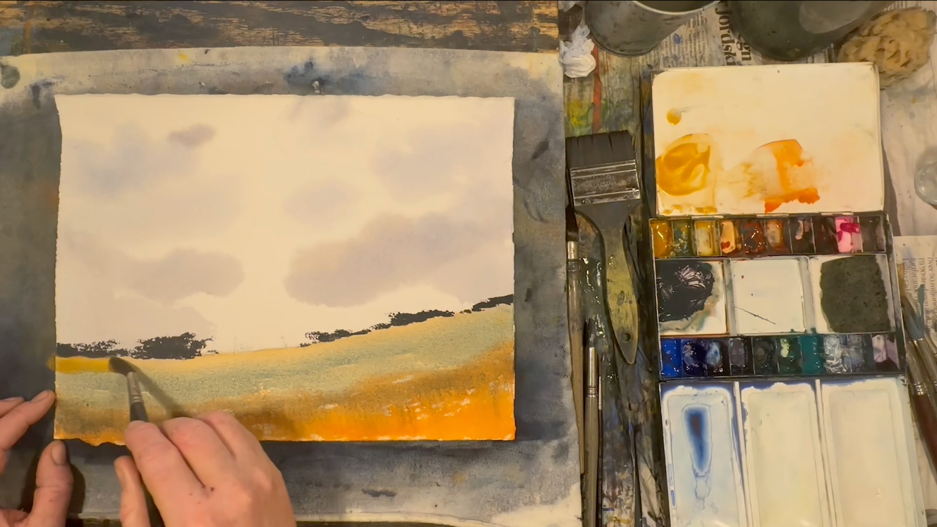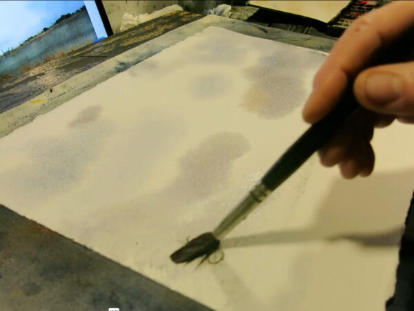 Vi tillbringar vår semester mestadels i Varberg, längst ut på Getteröns femte vik. Det här motiv kommer därifrån och jag målar utifrån mina upplevelser från denna vackra plats. I lektionen målar jag en himmel med moln, kulle med buskar, en grind och flygande mås. Lektionen är inspelad med hög filmkvalitet och har visats för onlinekursen Akvarell Akademin 2024