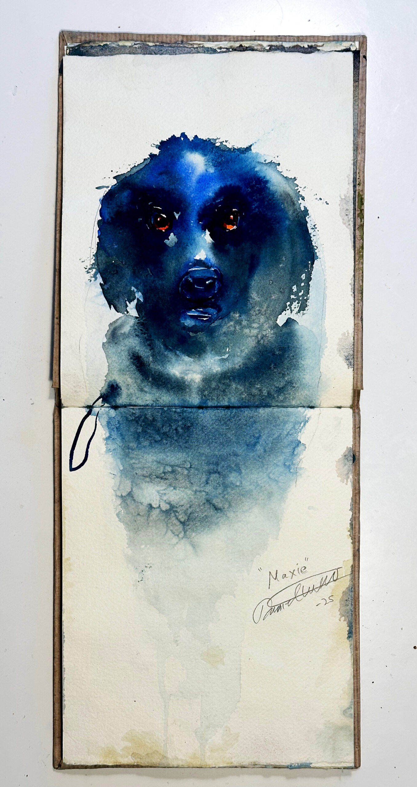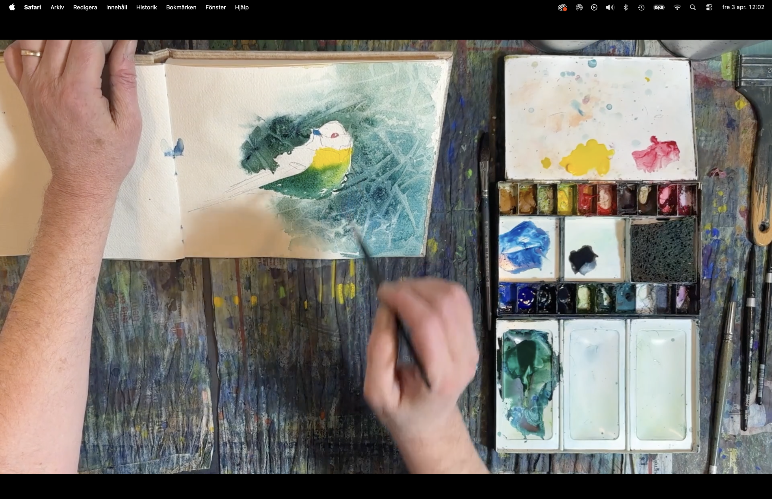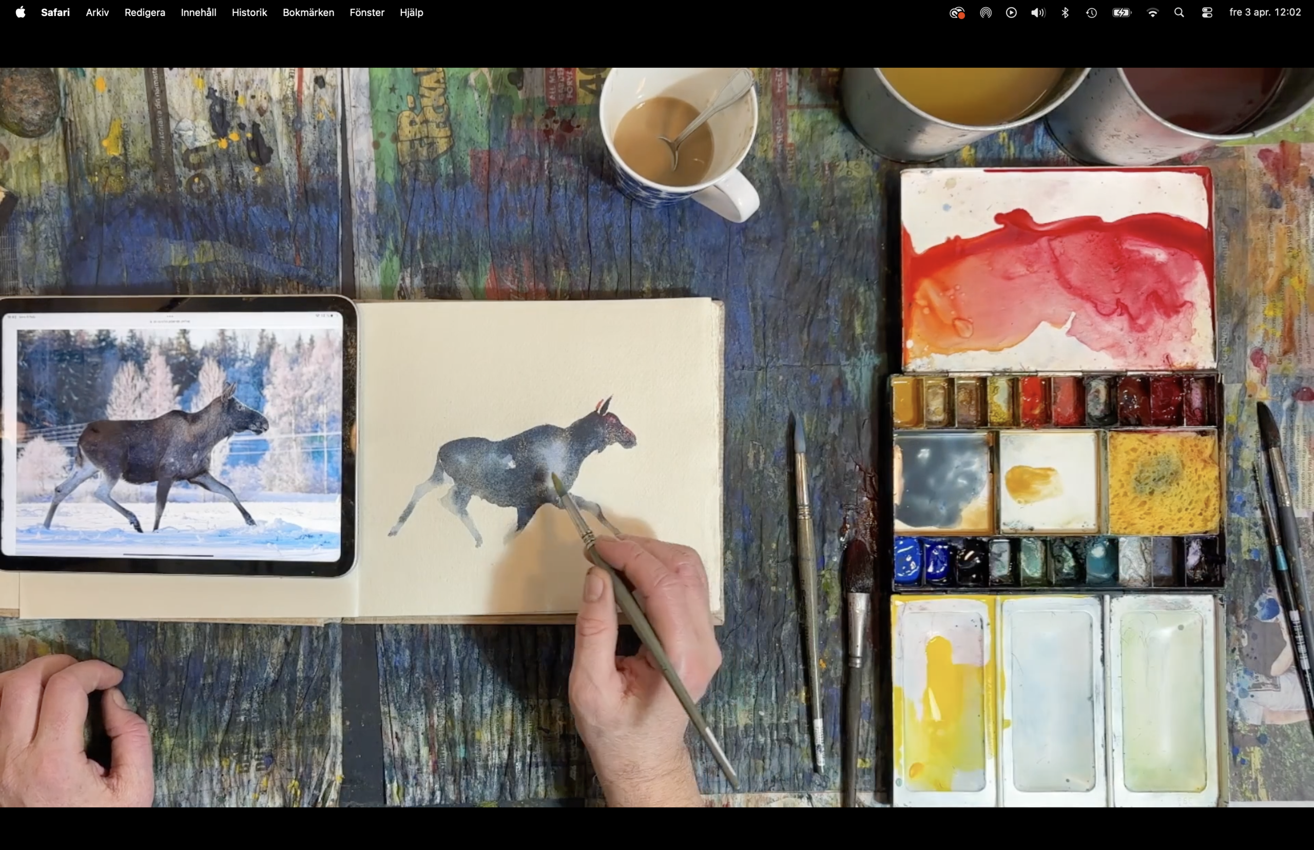 Målarboken var ett sidoprojekt för akvarell Akademin 2025. Filmen innehåller sju kortare filmer med motiv. Först ut är en studie en löpande älg, andra motivet en studie av två kossor, tredje motivet målar jag en flygande Pilgrimsfalk och visar lite tips på hur man arbeta med kirurgkniv. Fjärde motivet är en Talgoxe med en bakgrund skapad av plastfolie. Femte motivet är en Guldbagge med maskeringsvätska. Sjätte motivet hunden “Maxie” och sista motivet en blå björn med salteffekter. Skissboken går att köpa från www.jacksonsart.com med handgjort akvarellpapper (Khadi). Lektionen är inspelad med hög filmkvalitet och har visats för onlinekursen Akvarell Akademin 2025