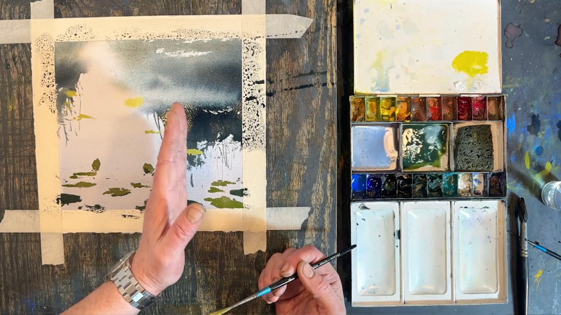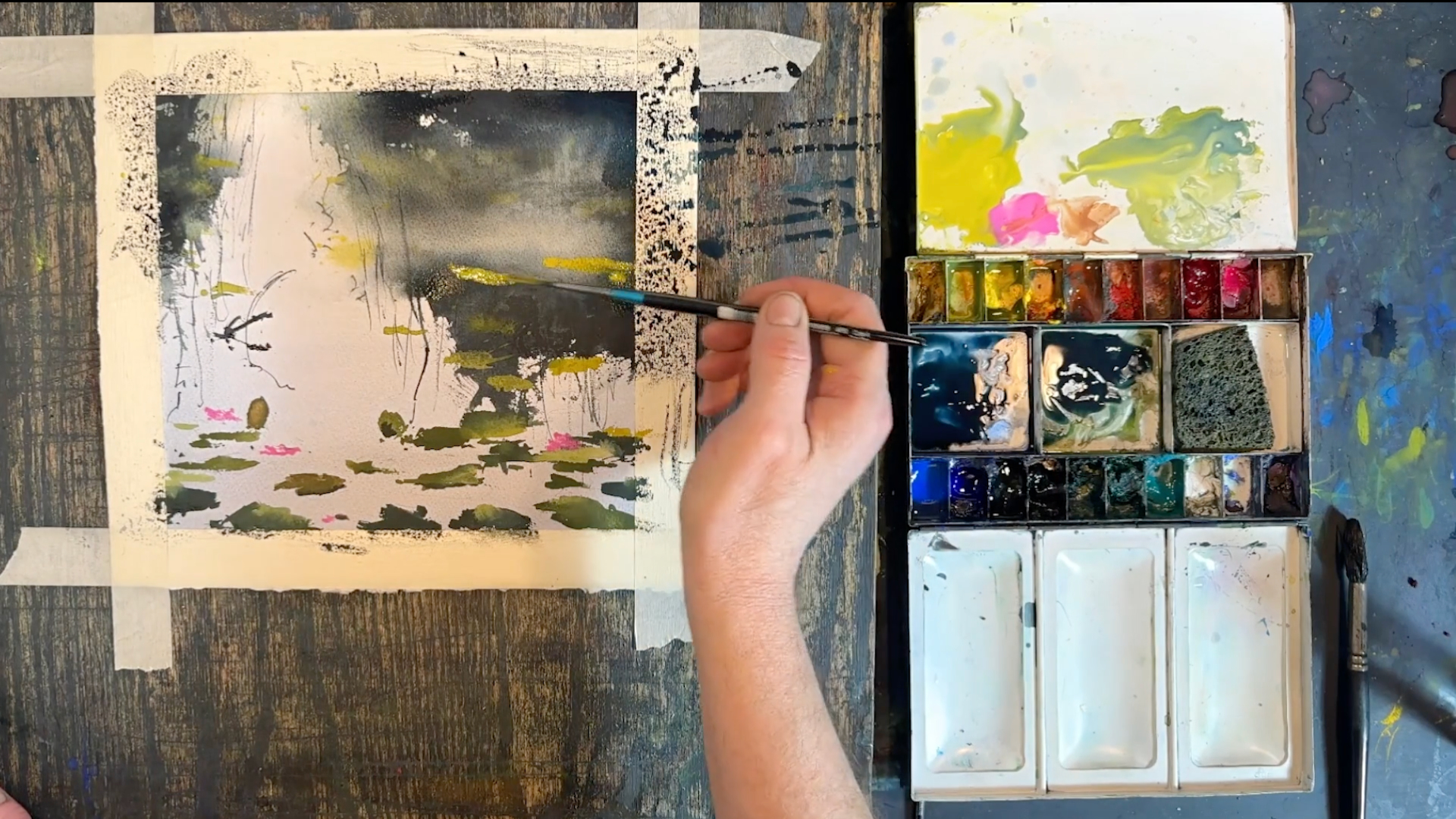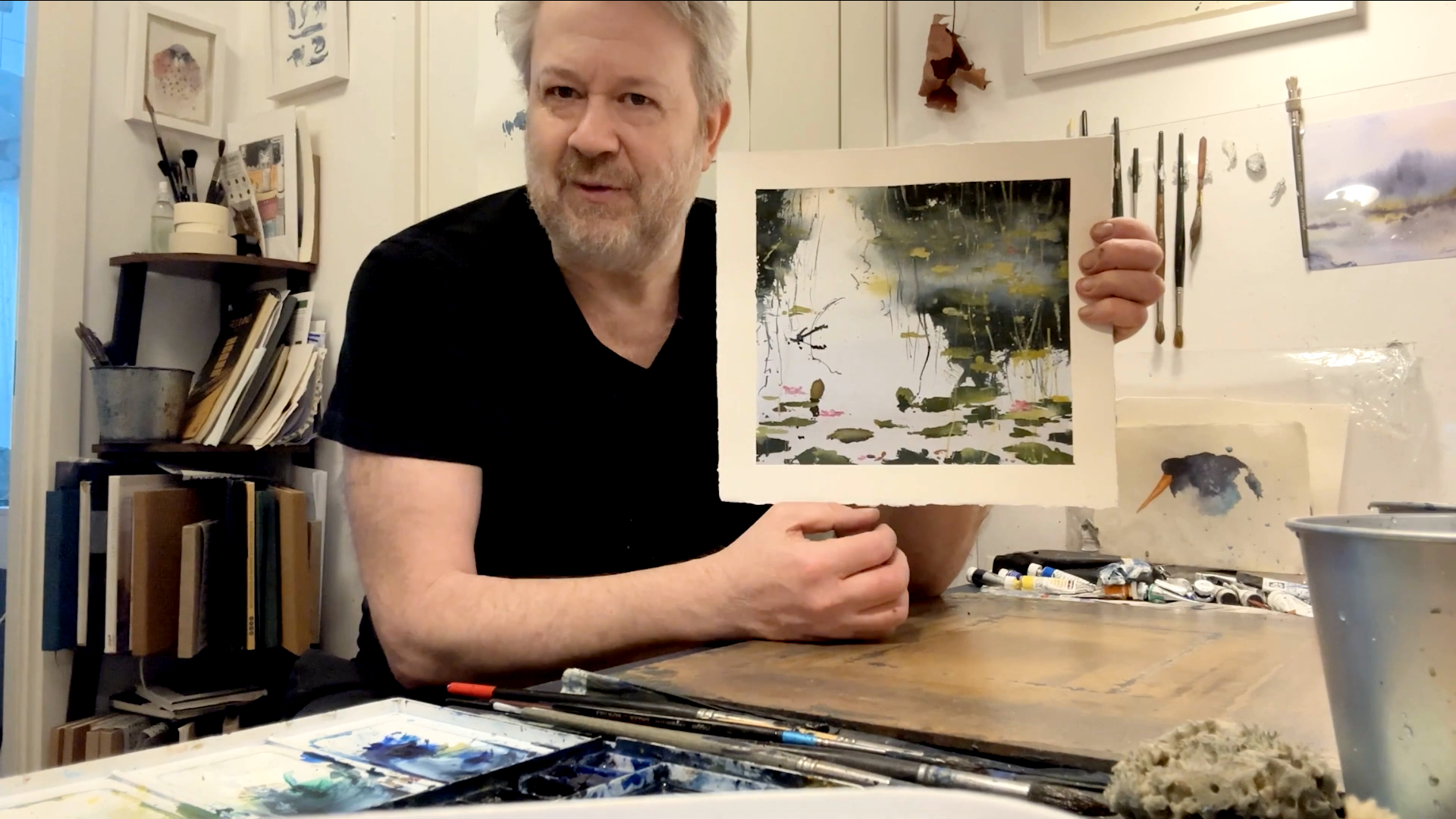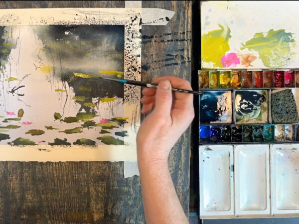 Jag har målar motiv med näckrosor med maskeringsvätska som finns i motivet “Stenar på vattnet”. I denna lektionen visar jag ett annat sätt att måla näckrosor utan maskeringsvätska. Jag målar trädreflektioner, vass och grenar och till sist näckrosorna. Lektionen är inspelad med hög filmkvalitet och har visats för onlinekursen Akvarell Akademin 2024.