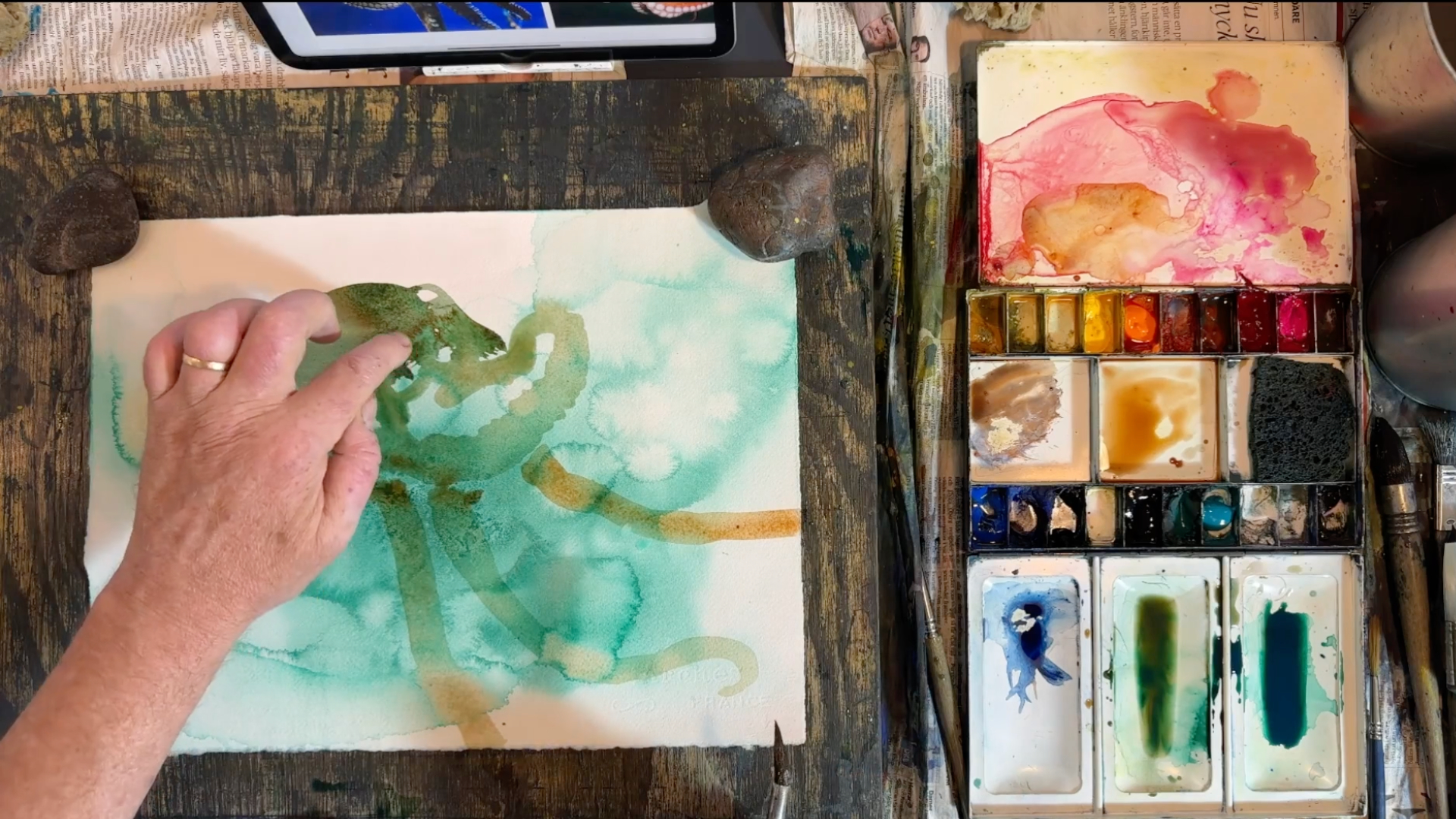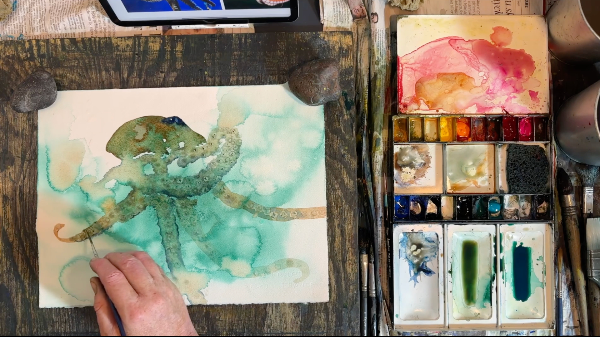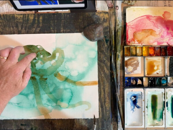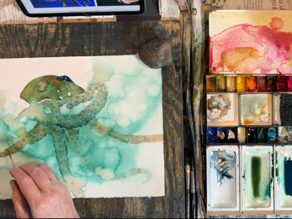 Vill du måla med mycket vatten och experimentera med hårtok, är det här en lektion för dig. Gillar du dessutom bläckfiskar finns det fler tips i lektionen som du kan ta med dig när du målar en egen tolkning. Lektionen är inspelad med hög filmkvalitet och har visats för onlinekursen Akvarell Akademin 2024