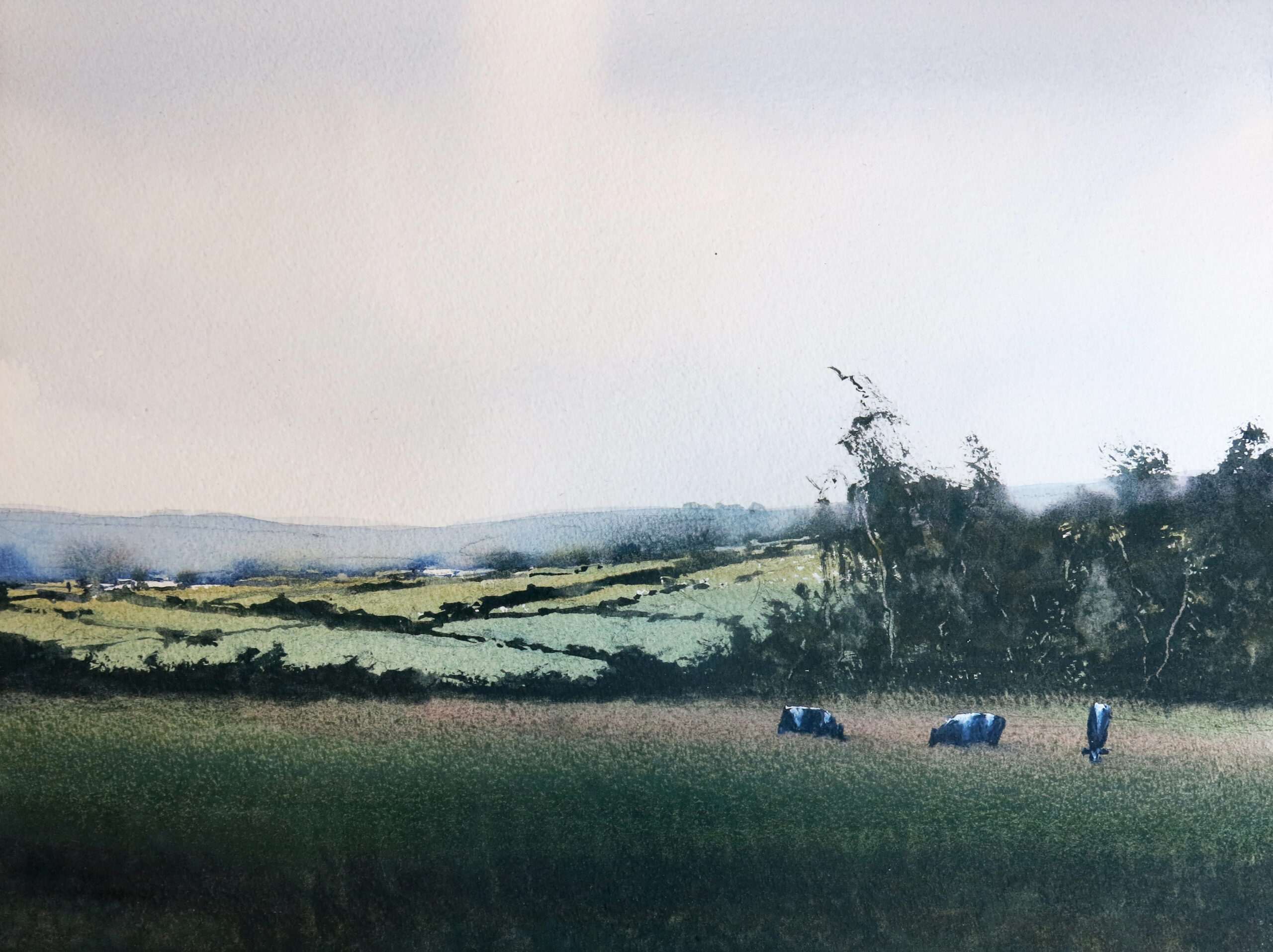 Motiv är inspirerat från min barndom där jag växte upp i en by som heter Skällinge. En idyllisk liten by med ett litet samhälle och en sjö som kallas Skällinge sjön där jag lärde mig simma. I lektionen målar jag ett landskapsmotiv med inslag av betande kossor på en äng. Vill du måla motivet, ger jag dig tips på hur man kan gestalta en himmel, ängar på distans, träd och betande kossor.
