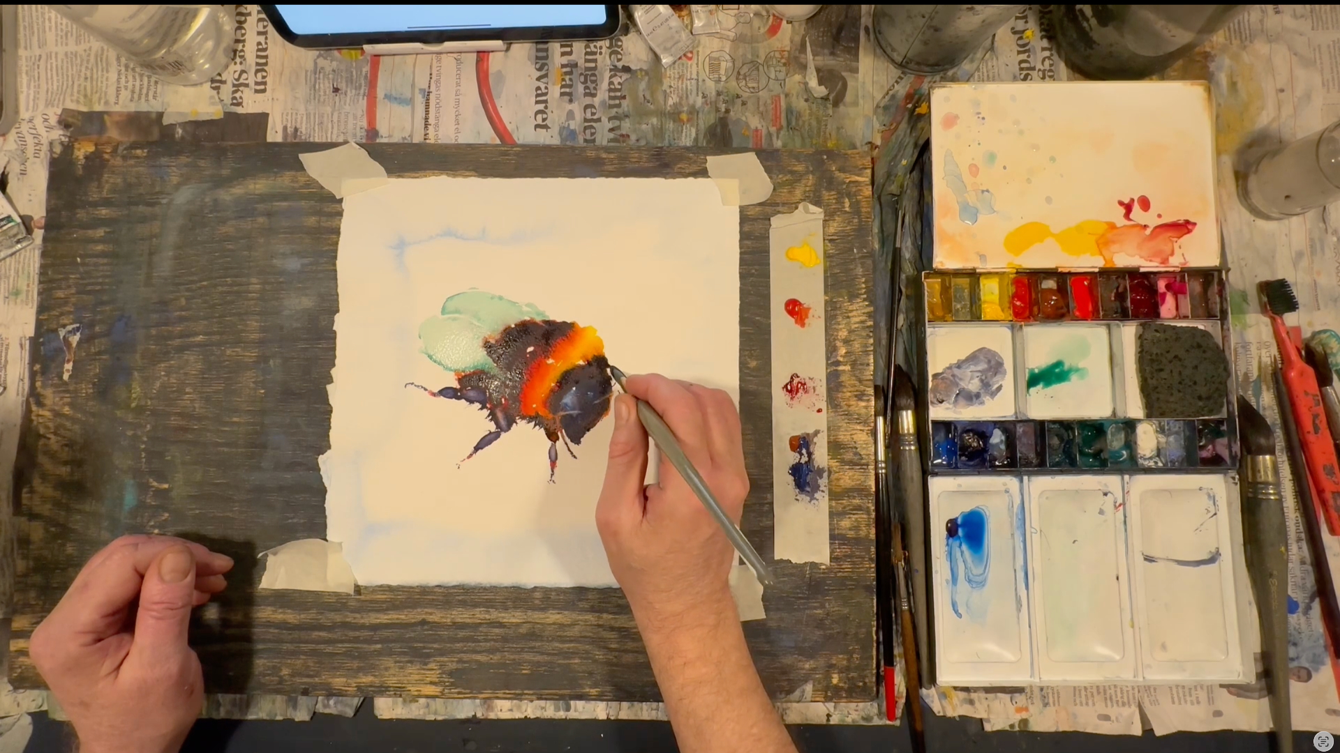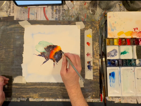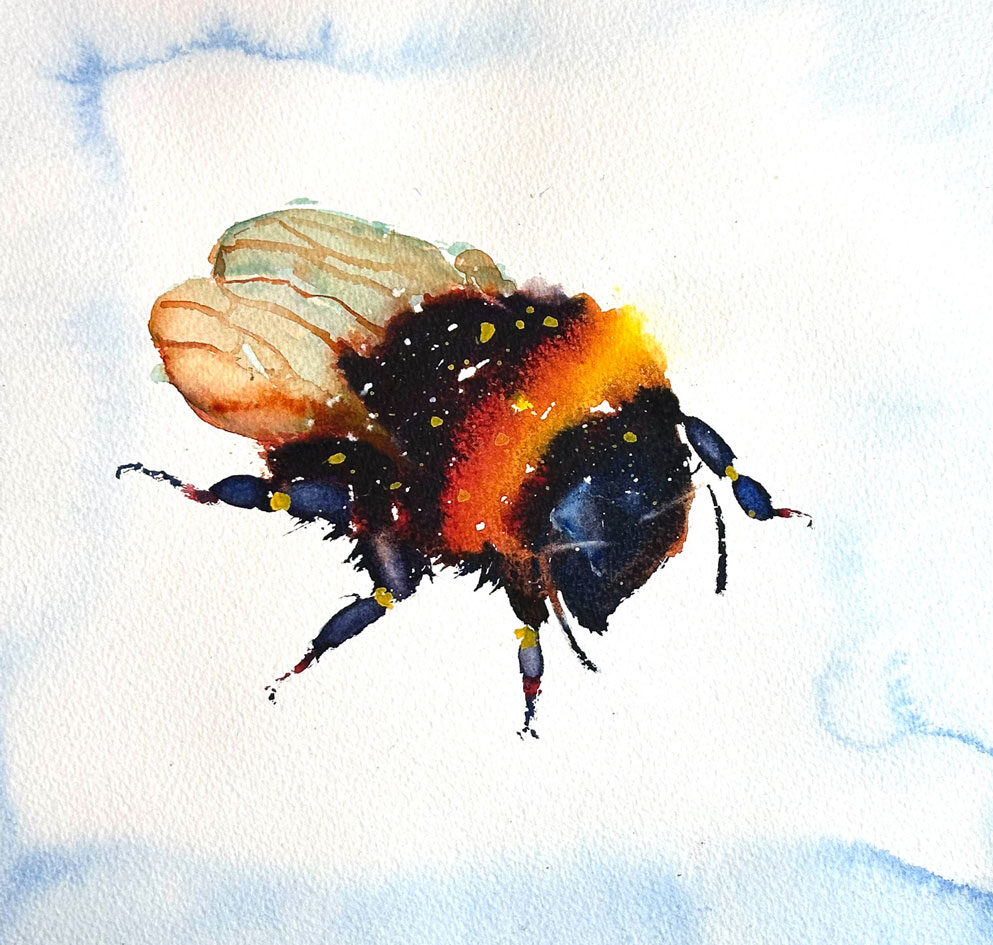 För dig som älskar att måla humlor, så kommer en lektion bara för dig! Jag har målat humlor i många år och det är en favorit insekt att gestalta. Det finns nog inte bara ett sätt utan tusen olika sätt att måla den på och här kommer ett av dem! I lektionen målar jag humlan med olika tekniker med det gula bandet och svärtan. Bakgrunden är skapad med blomningar sedan målar jag humlan steg för steg. Lektionen är inspelad med hög filmkvalitet och har visats för onlinekursen Akvarell Akademin 2024